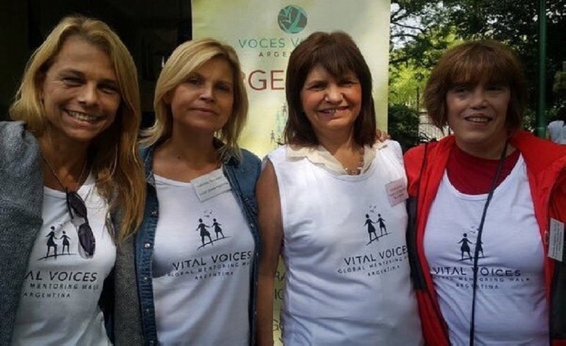 La ministra de Seguridad, Patricia Bullrich, y la titular Consejo Nacional de Mujeres, Fabiana Tuñez, aparecieron en un evento con la camiseta de una ONG cuyo financista es Paul Singer, el magnate dueño de varios fondos buitre que litigan contra Argentina.
